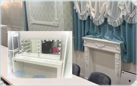 女優ミラー付きのドレッサーでお給仕前から気分が上がります☆
